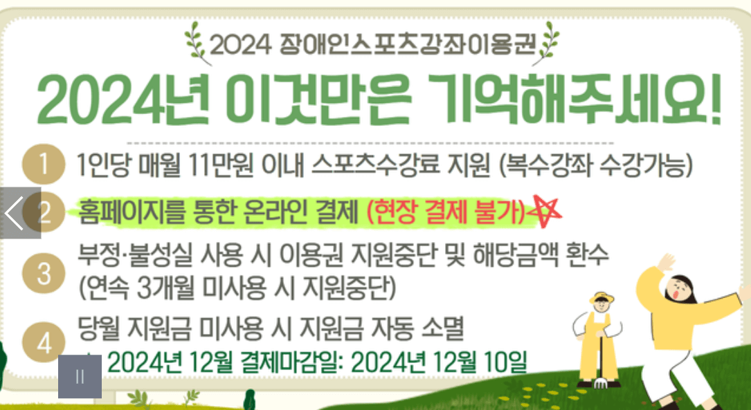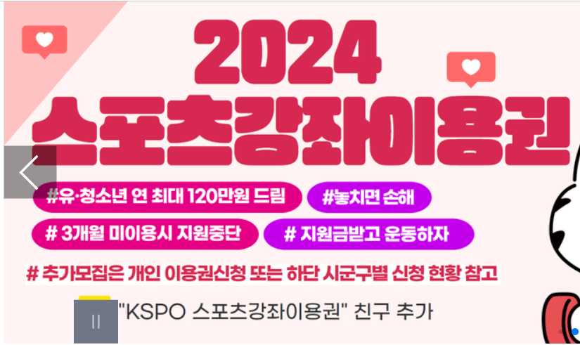 - 매월 최대 10만 5천 원의 스포츠 강좌 수강료 지원, 장애인은 최대 11만 원