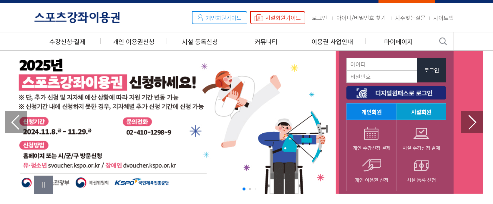 스포츠강좌이용권은 스포츠 바우처로 저소득층 유·청소년과 장애인에게 스포츠 강좌 수강료를 지원하는 정부 사업입니다.