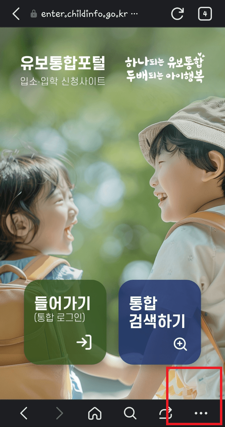 유보통합포털 어플은 아직 선보이지 않았습니다. 스마트폰에서 어플처럼 사용하는 방법이 있습니다. DAUM, NAVER, Chrome, Google에서 어플처럼 사용하는 방법을