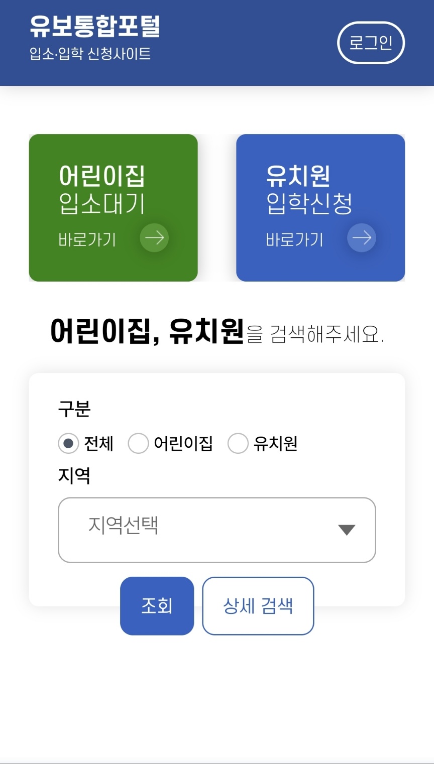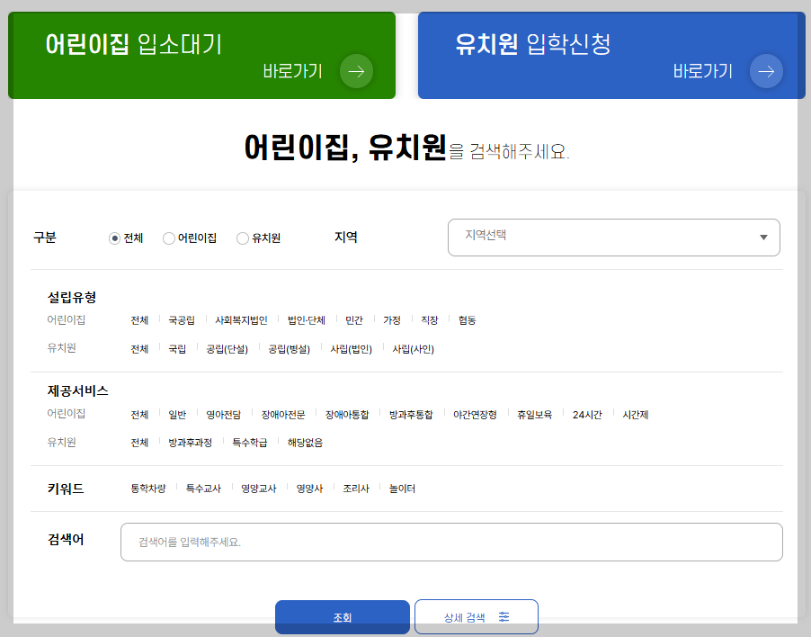 - 이제 어린이집 입소와 유치원 입학을 위한 검색을 하나의 통합시스템에서 하실 수 있습니다.