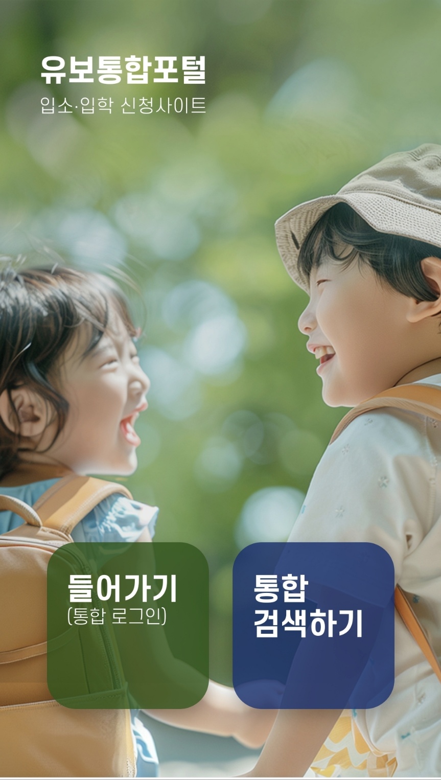- 유보통합 포털에 접속하여 회원가입 후 로그인하면 어린이집 입소대기와 유치원 입학 신청이 가능합니다.