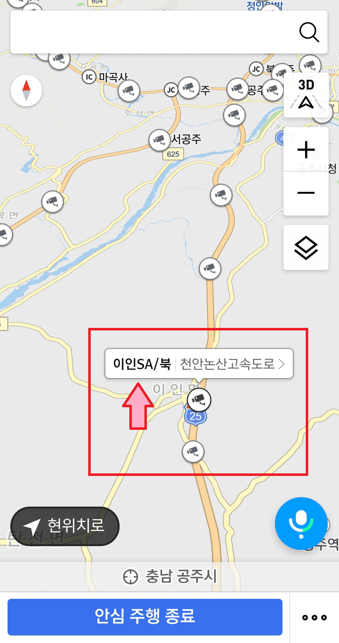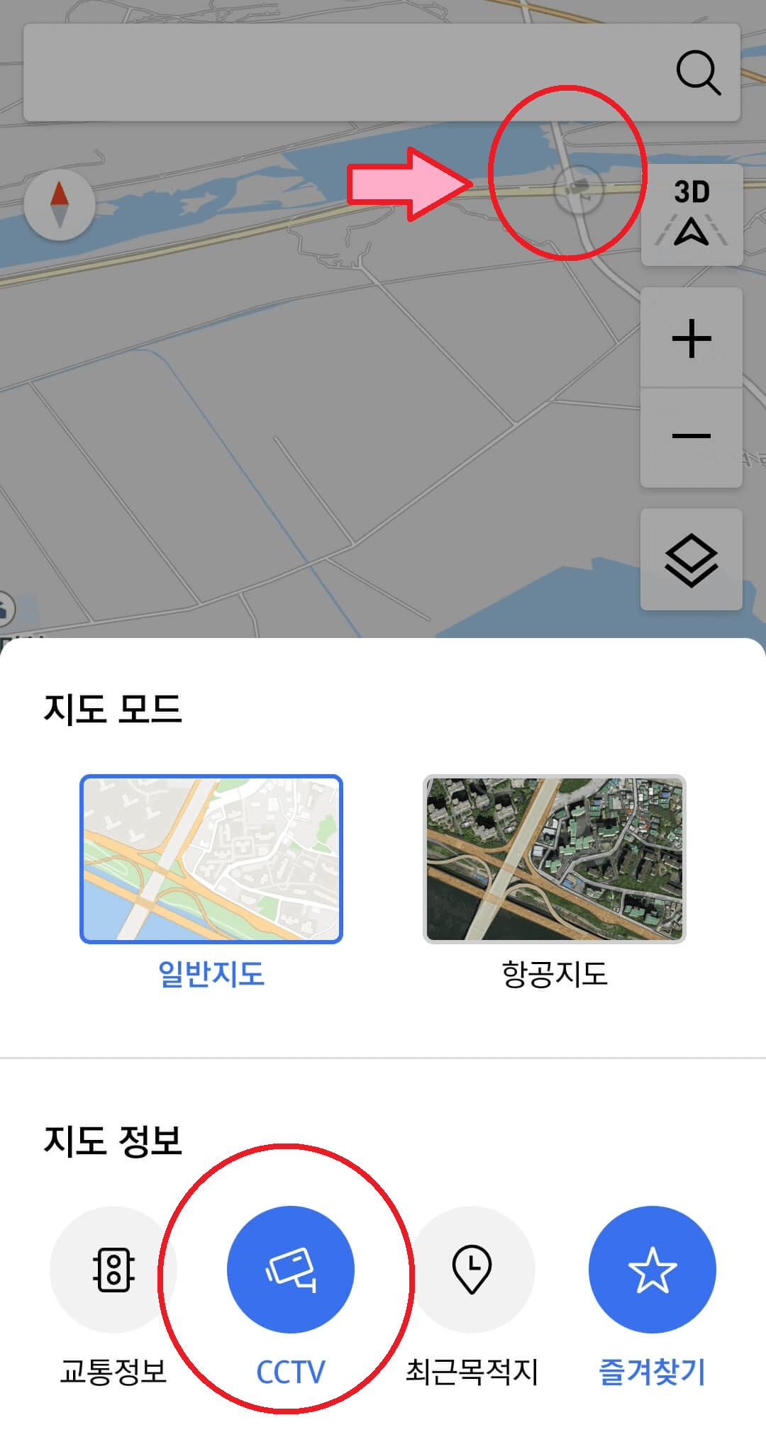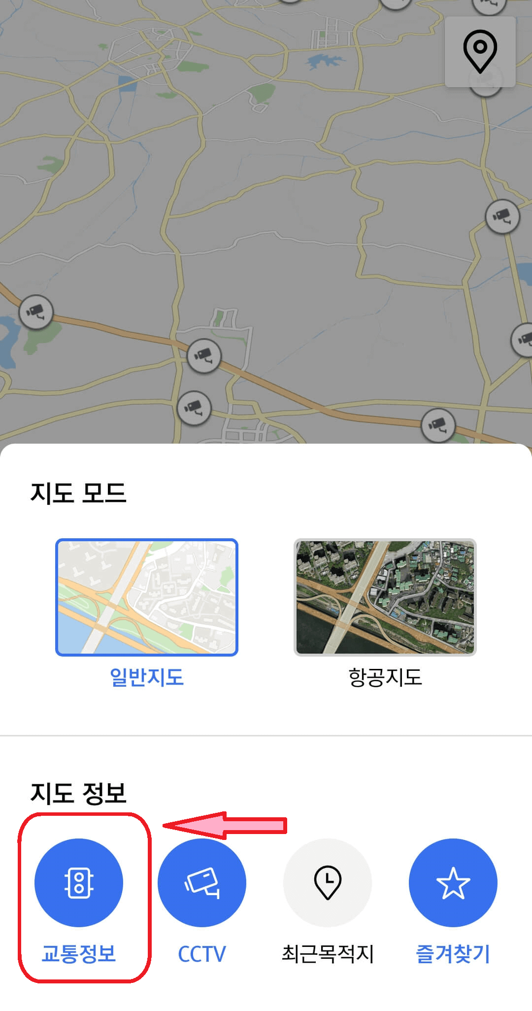 T맵에서 CCTV 기능 찾기