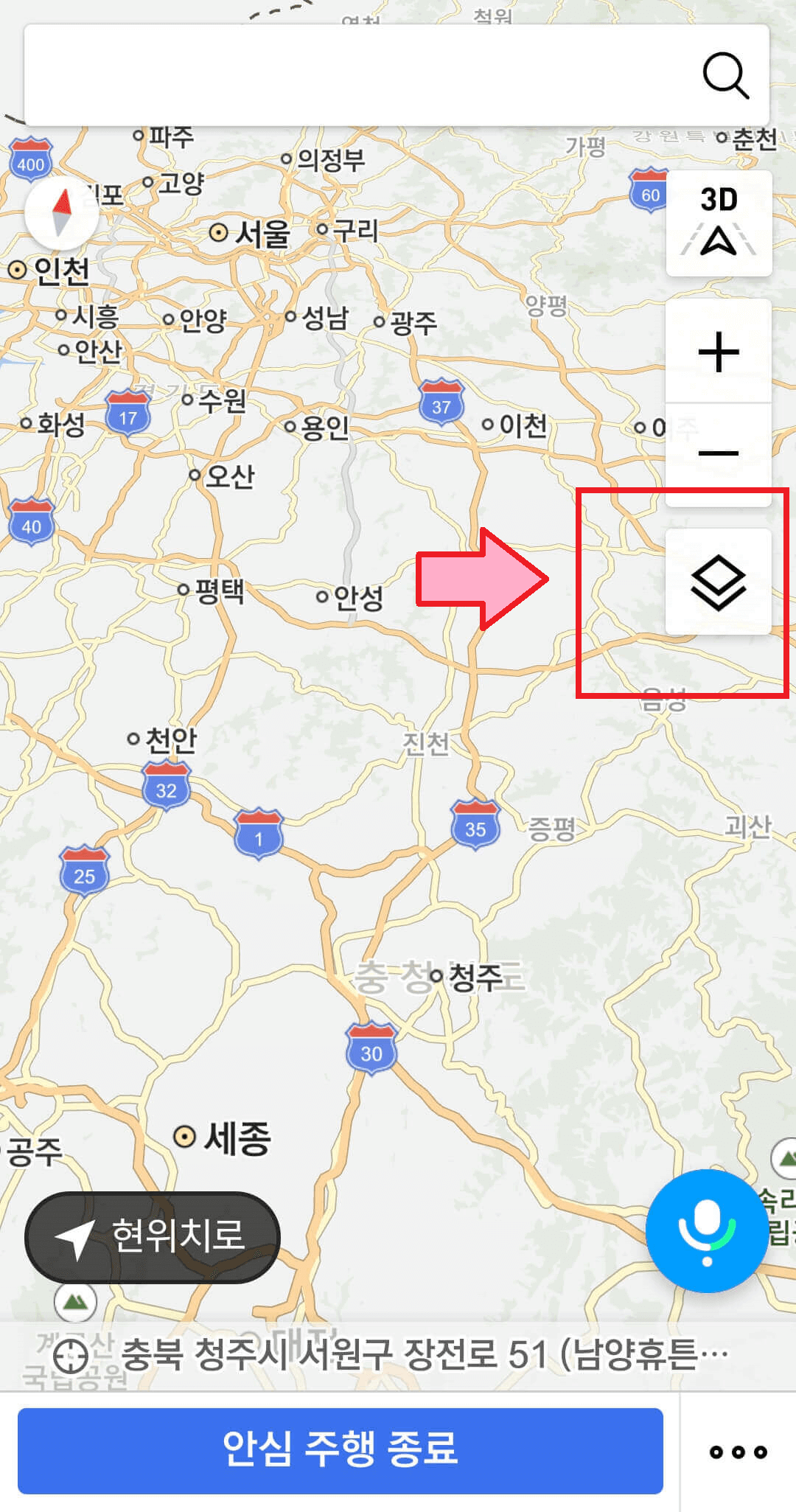 1. 똑같이 화면에서 레이어를 선택하고, 교통상황을 클릭합니다.