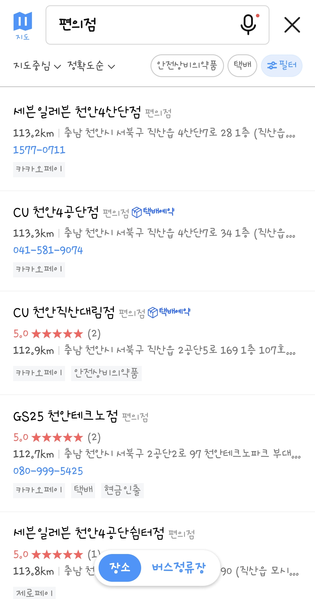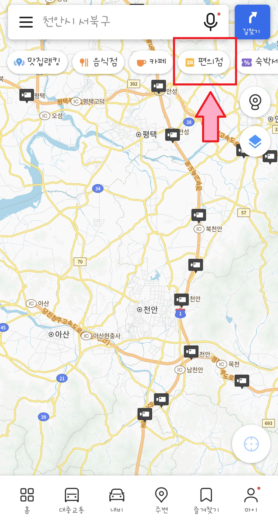 1. 카카오맵을 실행합니다. 카카오맵에서 위쪽의 '편의점'을 선택합니다.