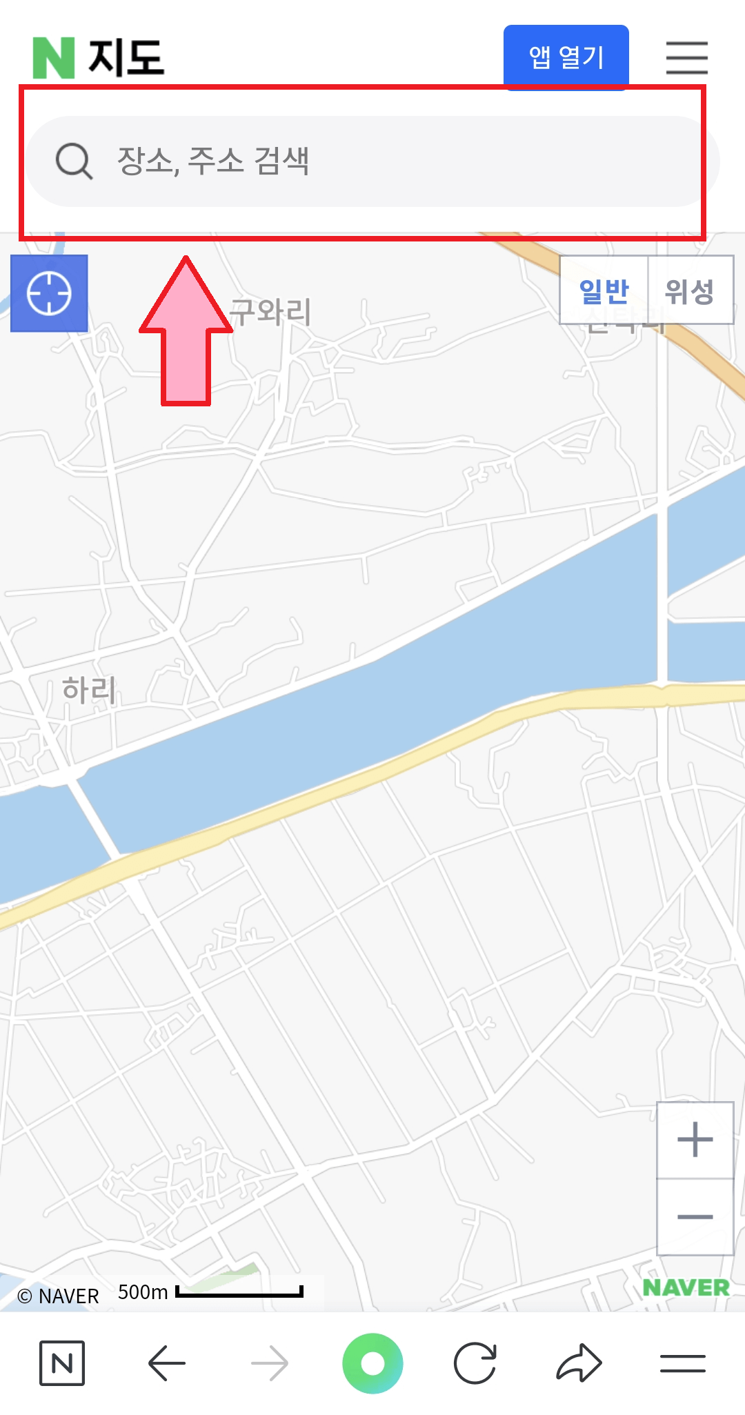1. 먼저 네이버지도를 실행하면 아래와 같은 화면이 나옵니다. 검색창을 클릭하면 오른쪽과 같은 화면이 나옵니다. 여기에서 원하는 항목을 선택합니다.