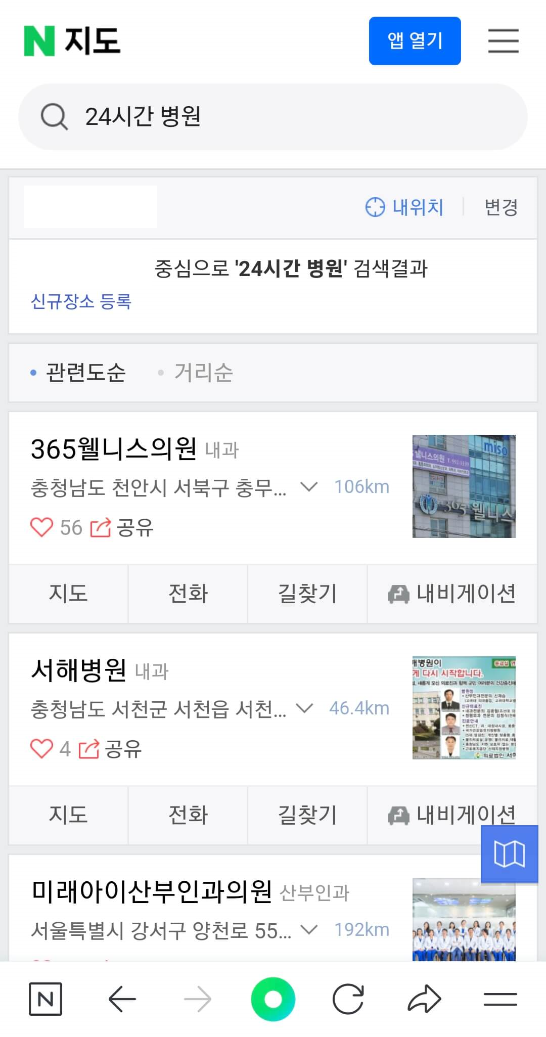 네이버지도도 앱을 다운받아야 안전상비의약품을 판매하는 편의점을 검색하시기 편합니다. 네이버지도에서는 24시간 운영 병원도 검색하실 수 있습니다.