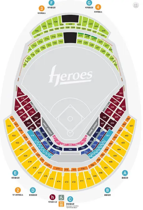 - 고척스카이돔 4층의 경우 관객 안전을 위해 가족석(2인석)으로 판매됩니다. 1좌석 선택 시 자동으로 2좌석 연석이 예매됩니다.